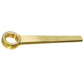 直柄单头梅花扳手材质以铍青铜和铝青铜为原料,铍青铜合金,铝青铜合金在撞击或磨擦时不发生火花,适合用来制造在易爆,易燃,强磁及腐蚀性场合下使用的 工具.主要适用范围是:石油精炼和石油化学工业,煤矿,油田, 气化学工业,火药工业,化纤工业,油漆工业,肥料工业,各种药品工业.石油轮和液化石油气的车辆,飞机,经营易燃易爆品的仓库,电解车间,通讯机装配车间,要求工具不生锈,抗磁的场所等.